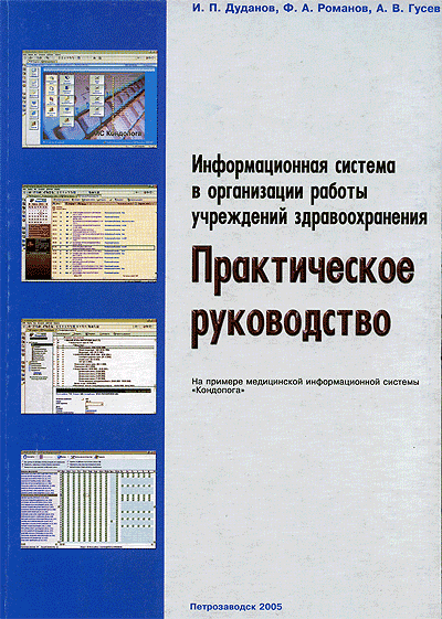 Дуданов И. П., Романов Ф. А., Гусев А.В. Информационная система в организации работы учреждений здравоохранения: Практическое руководство / И. П. Дуданов, Ф. А. Романов, А. В. Гусев. ПетрГУ - Петрозаводск, Издательство ПетрГУ, 2005 - 238 с.