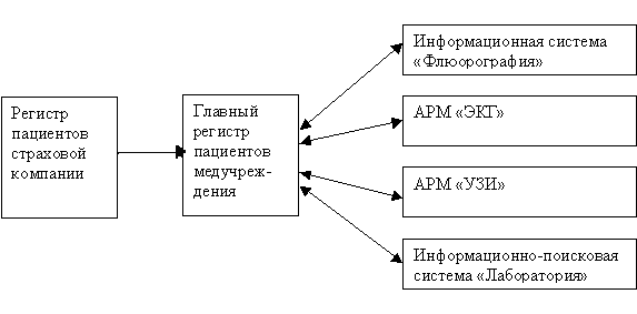 Вариант 1. В качестве главного регистра используется существующий регистр прикрепленного населения, создаваемого программными средствами медицинской страховой компании, обслуживающей данное медучреждение.